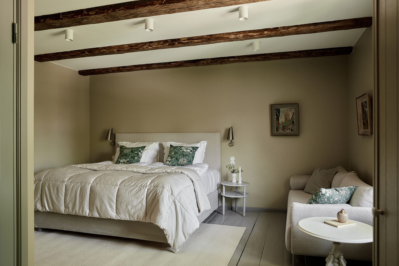 Alkujaan kahdeksan perheen kodiksi suunniteltu rakennus on saneerattu huolellisesti vanhaa kunnioittaen. Lopputuloksena on rauhan, viihtymisen ja hyvän olon tyyssija, jossa korkealaatuinen design kohtaa vintage-aarteet ja ylellisyys kodikkuuden.